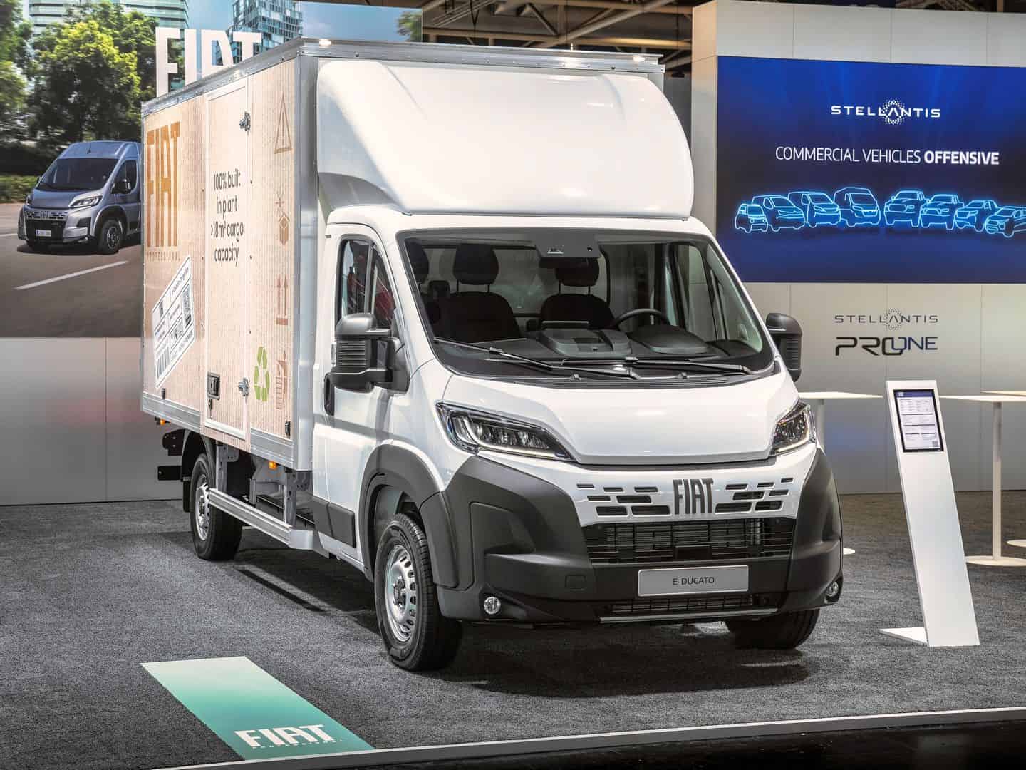 Prezentowany na stoisku w Hanowerze E-Ducato Cargo Box oferuje imponującą przestrzeń ładunkową 18,5 m³ i spore wymiary wewnętrzne, tj. 4 230 mm długości, 2 032 mm szerokości i 2 150 mm wysokości. Zbudowany jest na bazie elektrycznej wersji podwozia z kabiną z maksymalnym momentem obrotowym 410 Nm i mocą 200 kW (270 KM) w zestawieniu z akumulatorem o pojemności 110 kWh, co czyni go niezwykle wszechstronnym i wydajnym samochodem elektrycznym.