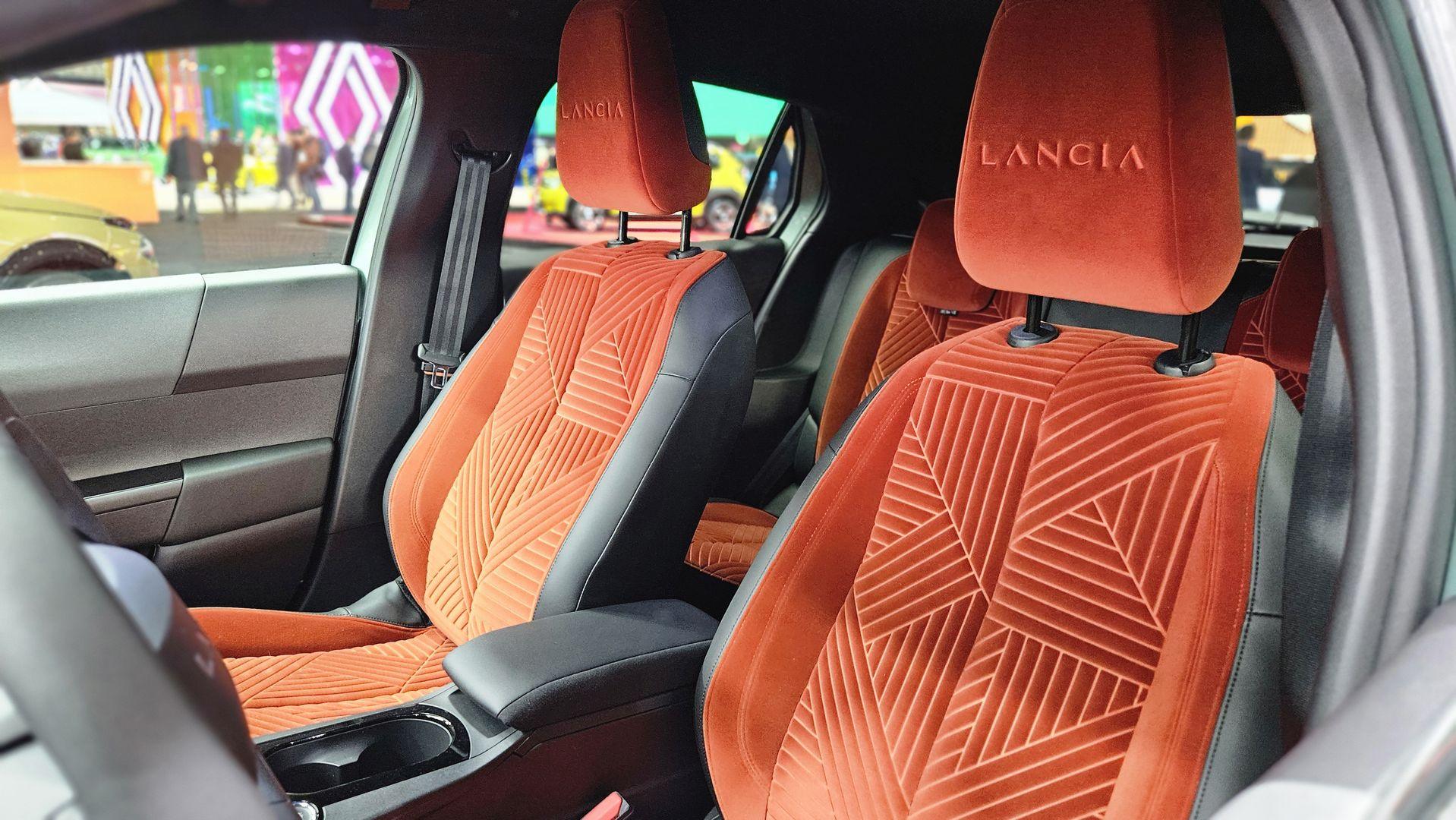 Wnętrze to dosyć oryginalne miejsce do podróży. Znajdziemy tu nowoczesne zdobycze technologiczne reprezentowane przez dwa 10,25-calowe wyświetlacze, wirtualnego asystenta S.A.L.A i bogaty zestaw systemów wspomagania prowadzenia pojazdu. Z drugiej strony, Lancia zapewniła osobliwe rozwiązania takie jak okrągły stolik z ładowarką indukcyjną, czy regulację nawiewów bocznych, które wyglądają niczym pokrętła w oldschoolowym odbiorniku radiowym. Fotele wykończono brązową lub szarą zamszową tapicerką, która przenosi nas myślami do lat 70 i 80.