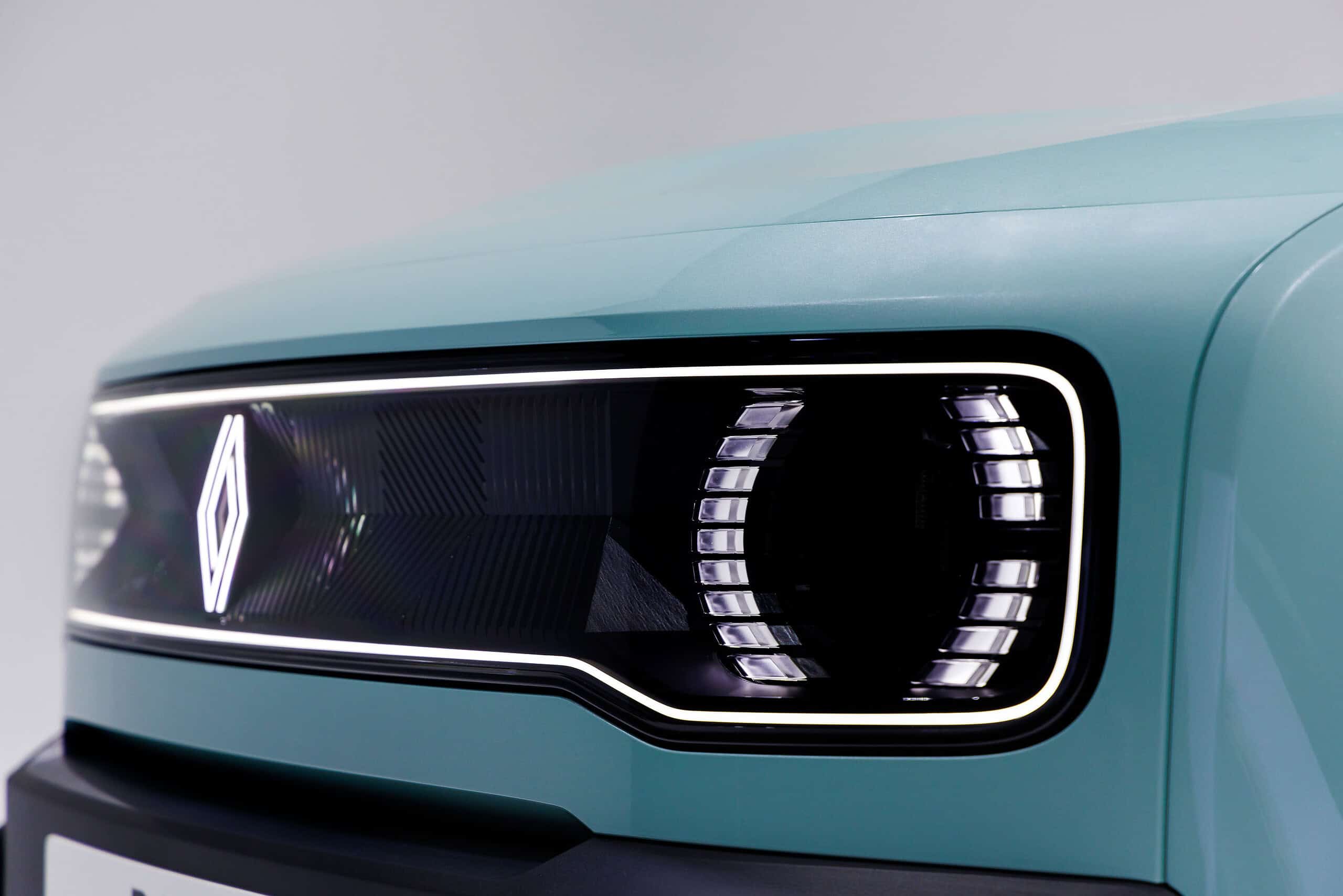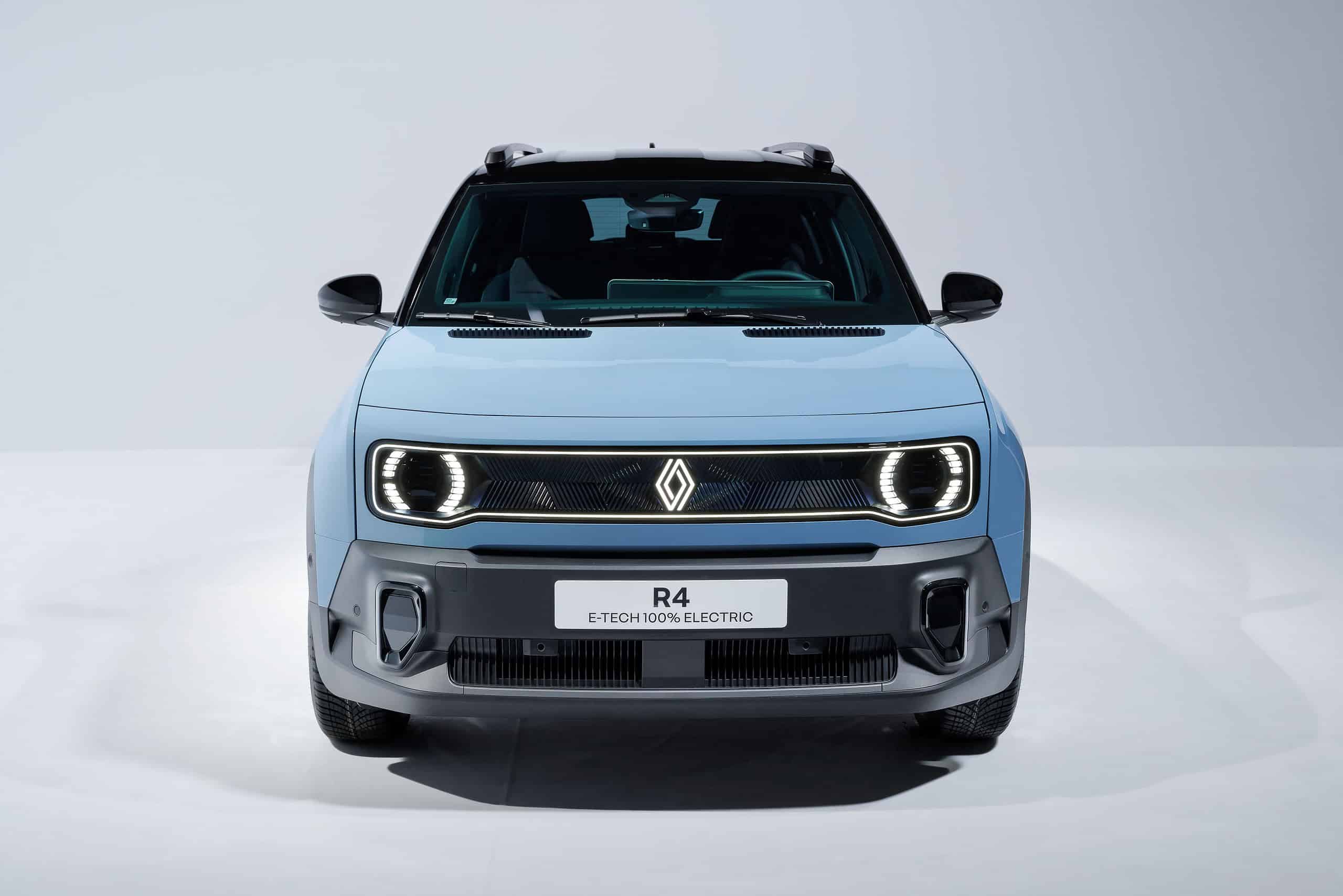 „Zawsze chcieliśmy wykorzystać światło jako sposób na prezentację naszych osłon chłodnicy. Obecnie pozwalają nam na to przepisy. Wymyśliliśmy na nowo kultową „maskę” z przodu R4 z podświetlaną obwódką integrującą matrycowe reflektory LED. Podświetlone jest również logo Renault w centralnej części. Renault 4 E-Tech Electric jest pierwszym pojazdem Renault wyposażonym standardowo w podświetlane logo, z naciskiem na estetykę, bezpieczeństwo i zaawansowany technologicznie design” – powiedział Gilles Vidal, wiceprezes ds. designu, Renault & Ampere