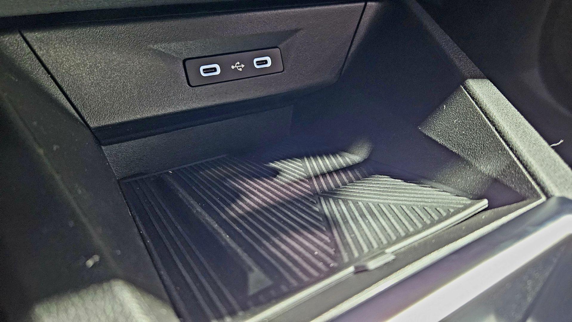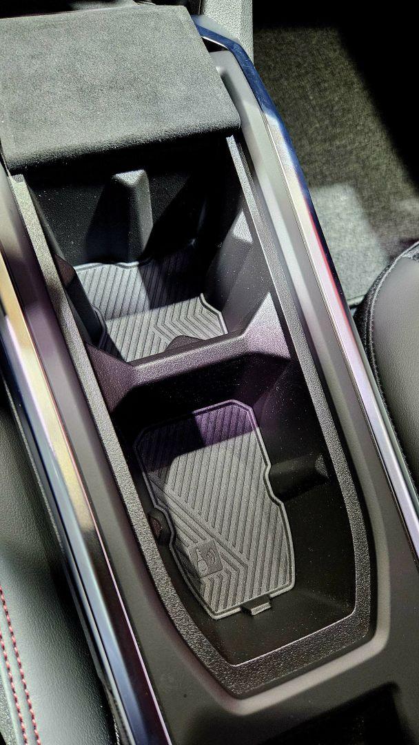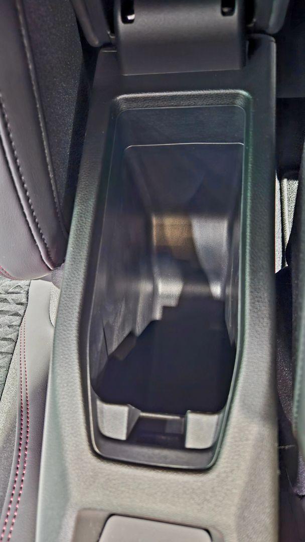 Po przeniesieniu selektora przekładni za kierownicę, na konsoli centralnej zwolniła się przestrzeń, na której umieszczono przykryty miękką pokrywą schowek z dwoma cup-holderami. Podobne rozwiązanie zastosował Stellantis w Jeepie Avengerze oraz Fiacie 600. W wersji z manualną przekładnią znajdziemy w tym miejscu drążek zmiany biegów oraz pojedynczy cup-holder.