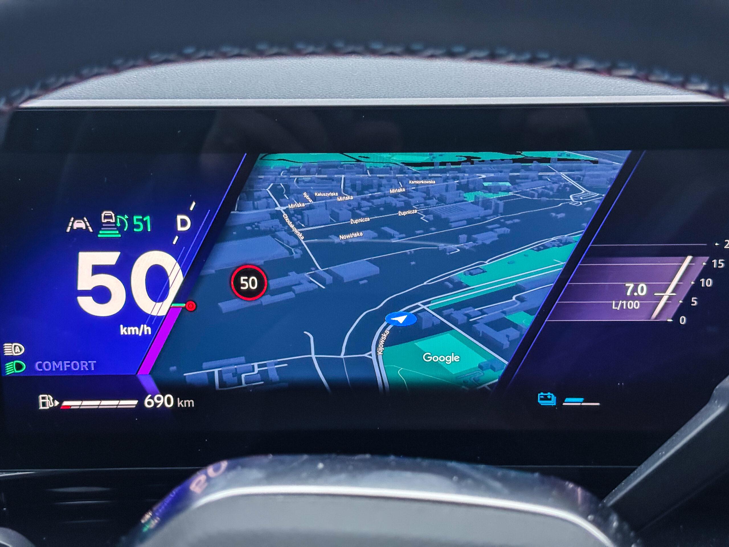 Komputer, po zatankowaniu auta do pełna, pokazuje ponad 750 kilometrów zasięgu i tyle w warunkach miejskich powinno być do uzyskania.