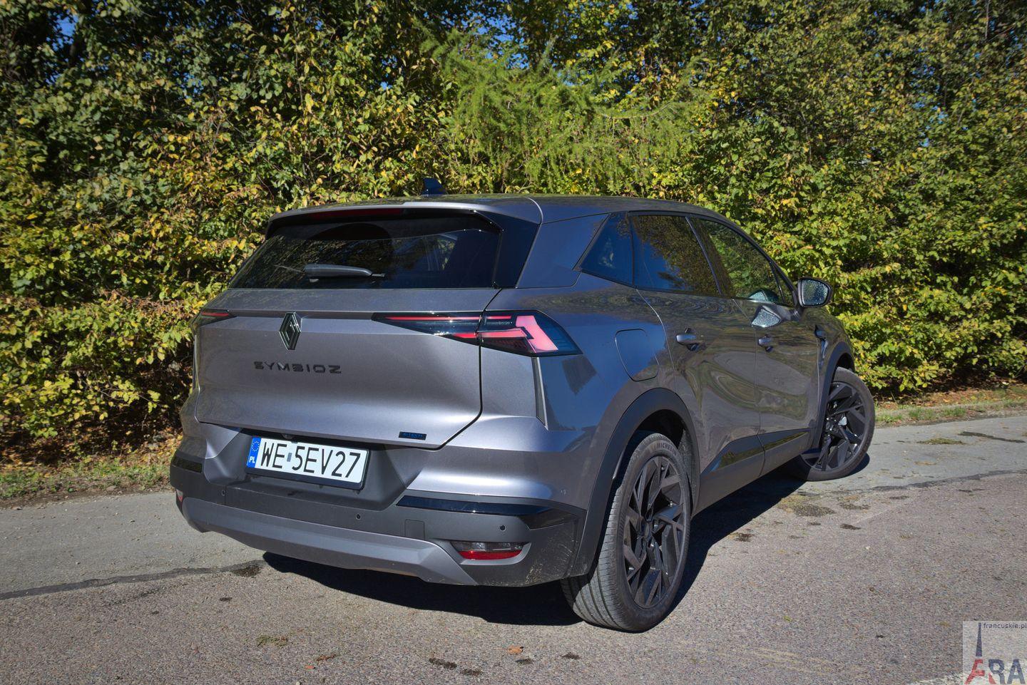 Z dodatkowego wyposażenia testowy Symbioz miał też podgrzewaną przednią szybę, przednie fotele podgrzewane i z regulacją elektryczną wysokości/wzdłużną/oparcia (Pakiet winter esprit Alpine za 2.700 zł), funkcję bezpiecznego wysiadania + easy pilot + asystent jazdy w korku i na autostradzie + system kontroli martwego pola + system wspomagania wyjeżdżania z miejsca parkingowego tyłem z systemem wspomagania nagłego hamowania podczas jazdy do tyłu (pakiet driving & safety za 3.600 zł), a także system multimedialny openR link 10,4″ z nawigacją, z nagłośnieniem Harman Kardon, z dotykowym ekranem, z radioodtwarzaczem DAB, 9 głośnikami oraz dwoma portami USB-C i jednym gniazdem 12 V (za 3.800 zł). Do tego doszedł jeszcze lakier metalizowany (różne ceny, od 2.800 zł przez 3.000 zł po 3.200 zł). Auto seryjnie w tej wersji wyposażane jest w 19-calowe felgi o nazwie elixir. Elektrycznie sterowana pokrywa bagażnika kosztuje 2.000 zł (jest seryjna w iconic).