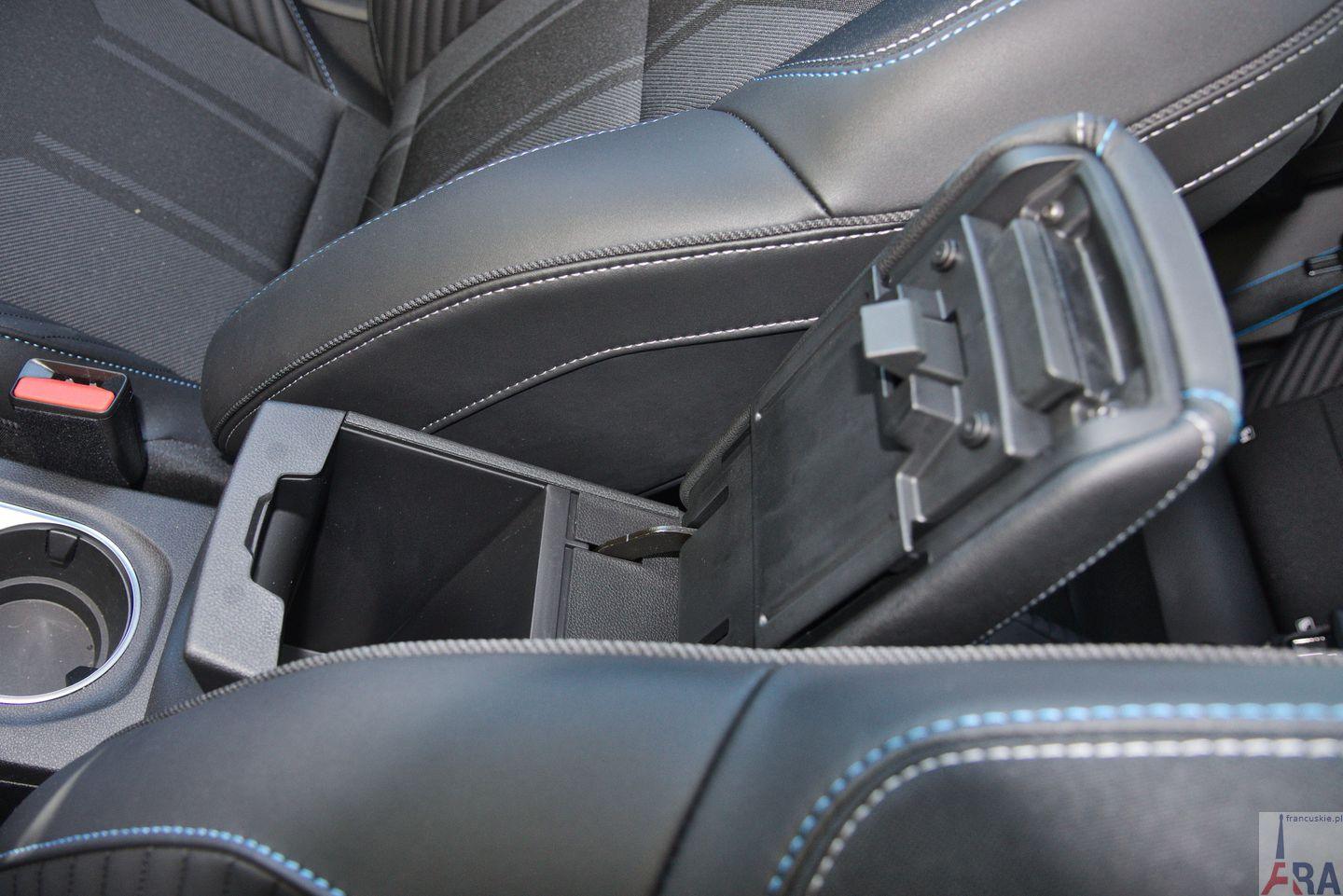 Za to między przednimi fotelami znajdziecie przesuwany wzdłużnie podłokietnik, który kryje w sobie kolejny schowek.