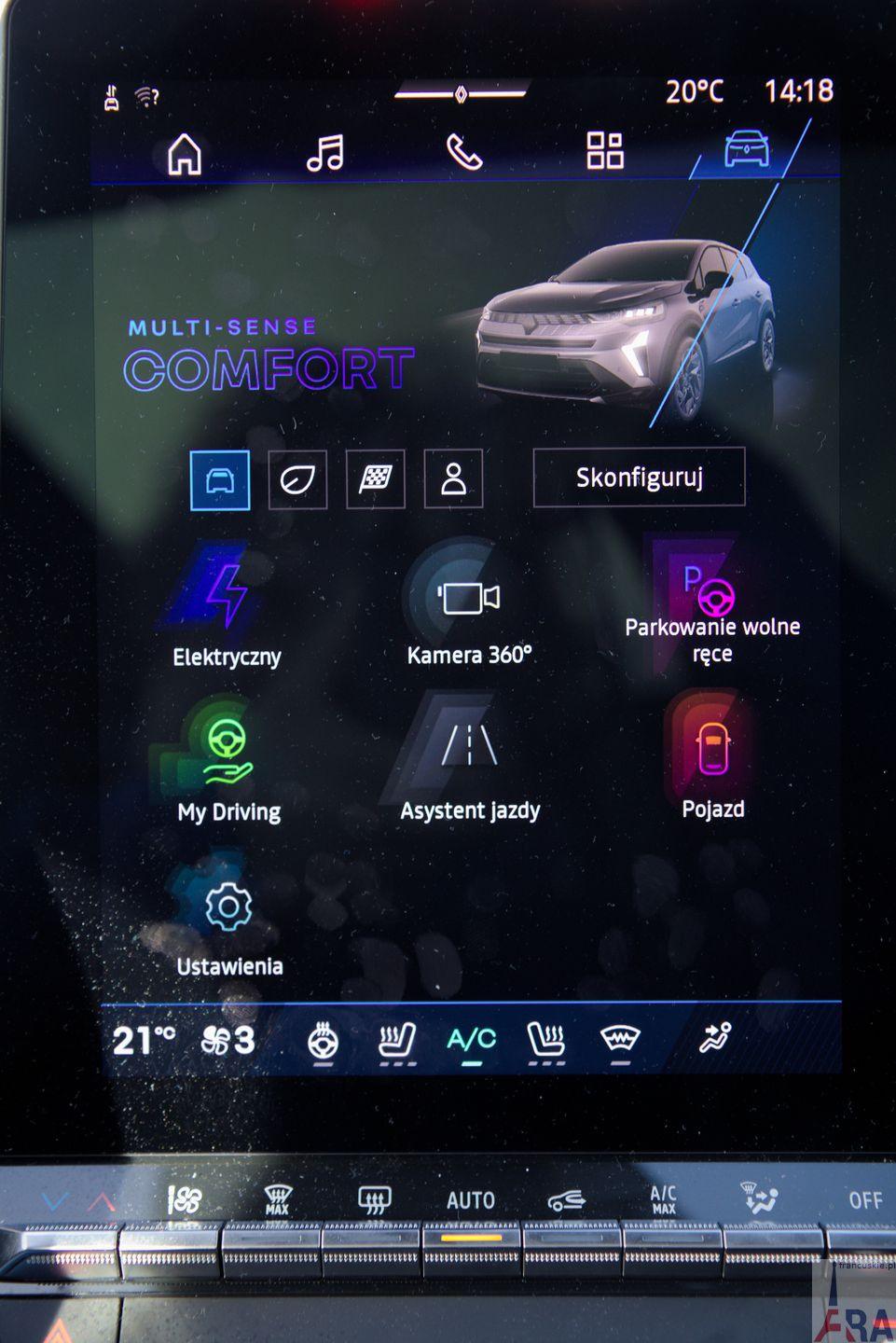 W moje ręce trafił Symbioz w odmianie esprit Alpine. Naturalnie, jak to zwykle bywa w autach z parku prasowego, wzbogacony o kilka opcji. Najbardziej spektakularną jest niewątpliwie panoramiczny szklany dach Solarbay®, który ma możliwość uzyskania nieprzezroczystości dzięki zastosowaniu w nim ciekłych kryształów. Ta opcja, dostępna w wersjach techno, esprit Alpine oraz iconic, wyceniana jest na 7.000 zł. I mi się bardzo podoba.