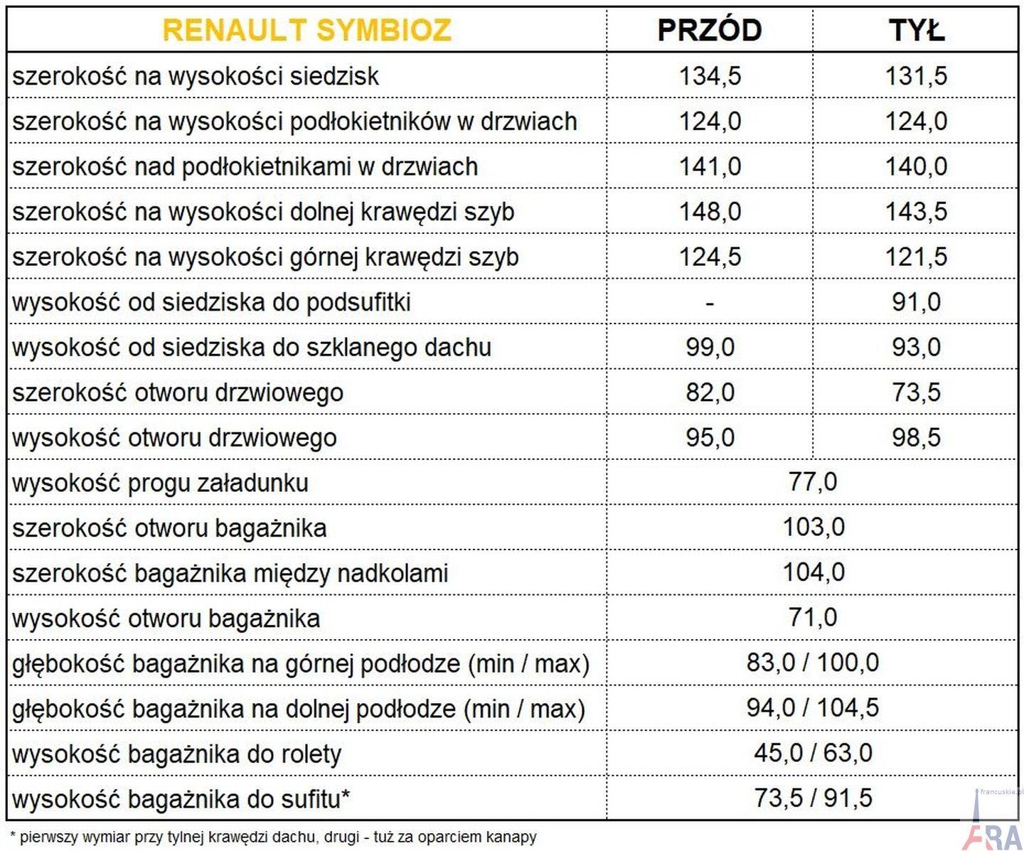 Symbioza użytkuje się całkiem przyjemnie. Samochód, to typowe Renault ostatnich lat – jest praktycznie taki sam, jeśli chodzi o obsługę, jak Captur, ale zapewnia więcej funkcjonalności. Symbioz ma długość 4.413 mm (Captur 4.239 mm, czyli o 174 mm mniej), szerokość 1.797 mm (licząc bez lusterek, Captur jest tej samej szerokości), wysokość 1.575 mm (dokładnie tak samo, jak Captur), oba modele mają też ten sam rozstaw osi (2.639 mm) oraz prześwit (169 mm). Jak więc widać jedyny gabaryt, jakim się różnią, to długość całkowita – wynikająca ze zwiększonych zwisów, głównie tylnego. Można więc zaryzykować stwierdzenie, że Symbioz, to taki trochę Captur kombi ;-)