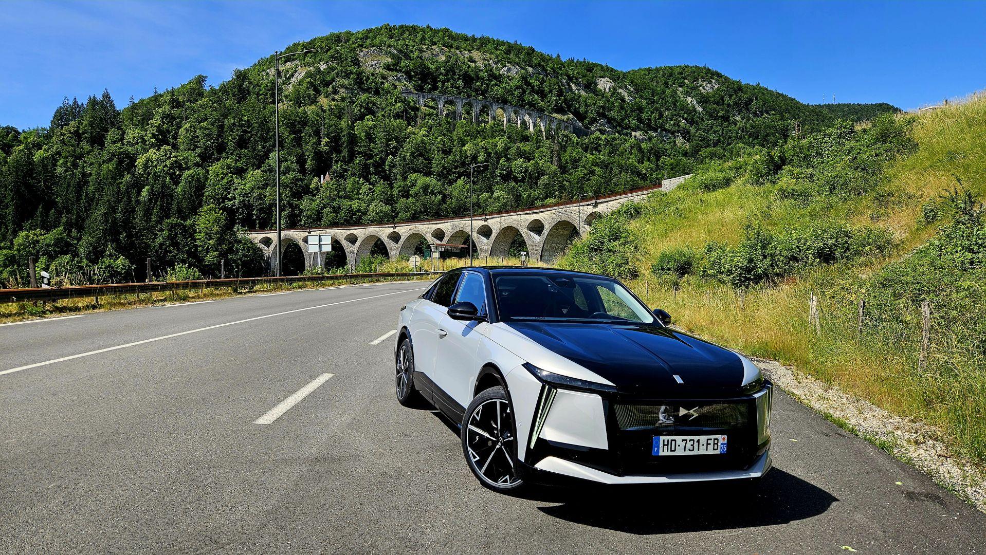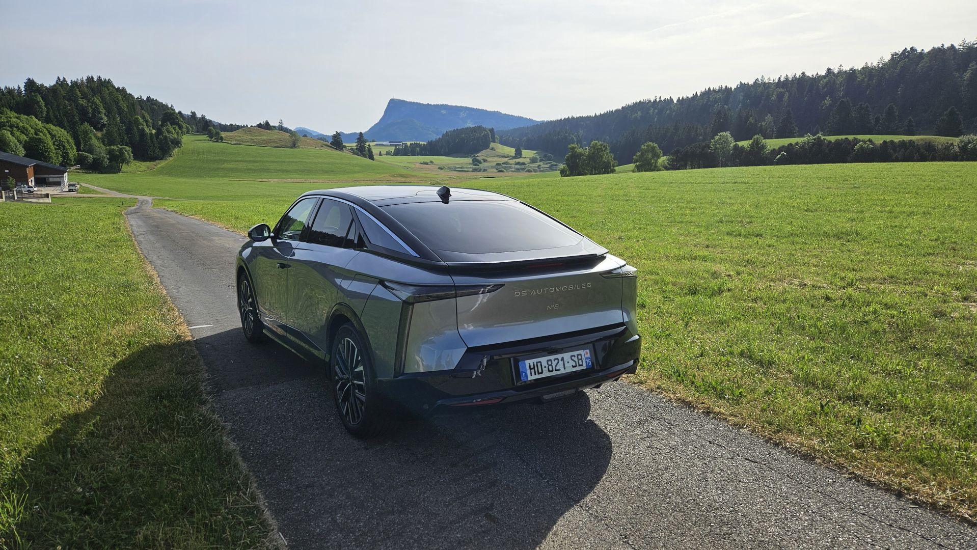 Jazda przebiegała w terenach górskich i DS Nº8 chętnie piął się po wzniesieniach i serpentynach. Zużycie energii topową wersją, bez przejmowania się ekonomią wyniosła średnio 21,6 kWh/100 km, czyli znacznie więcej niż deklarowane przez producenta 16,6 kWh. Katalogowy zasięg wynosi tu 688 km. Pokonanie 131 km, zmniejszyło zasięg pojazdu o 218 km. Trasa była dosyć wymagającą, ale z ograniczeniem prędkości na większości trasy do 80 km/h.
