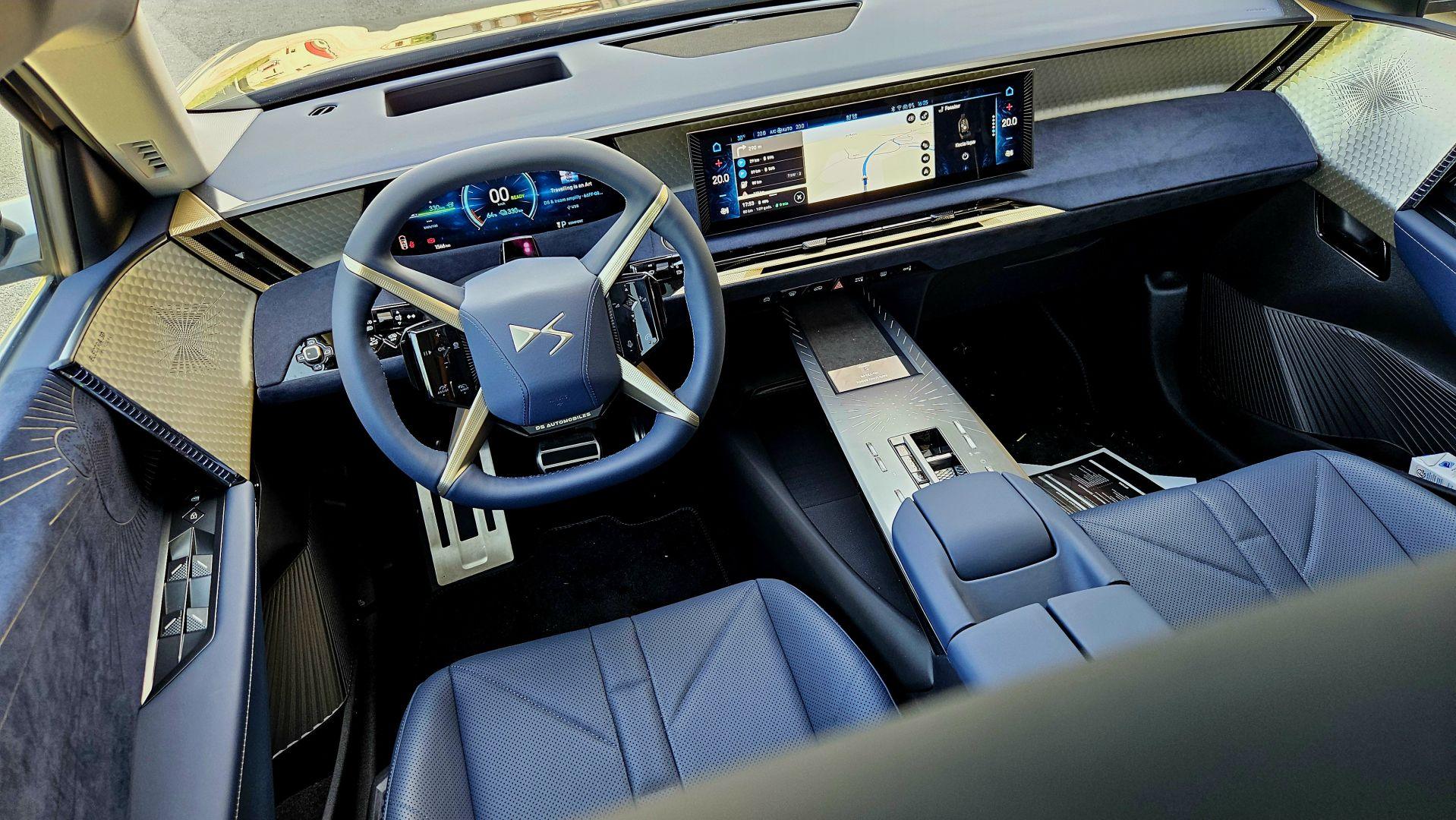 Miękko wykończoną kabinę zdobi niebieska tapicerka ze skóry Nappa w połączeniu z granatową alkantarą i złotymi, kosmicznymi motywami nawiązującymi do książki „Z Ziemi na Księżyc” Juliusza Verne’a. Wszystkie, nawet funkcyjne elementy wykonano w artystycznej formie i z zegarmistrzowską precyzją. Nawiązanie do sztuki powstawania czasomierzy nie jest tu przypadkowe, wszak jednym ze znaków rozpoznawczych DS Automobiles jest motyw bransolety zegarka na fotelach. Poza tym, znajdowaliśmy się w Szwajcarii. Produkowane tu zegarki na całym świecie słyną z precyzji, elegancji i jakości wykonania.