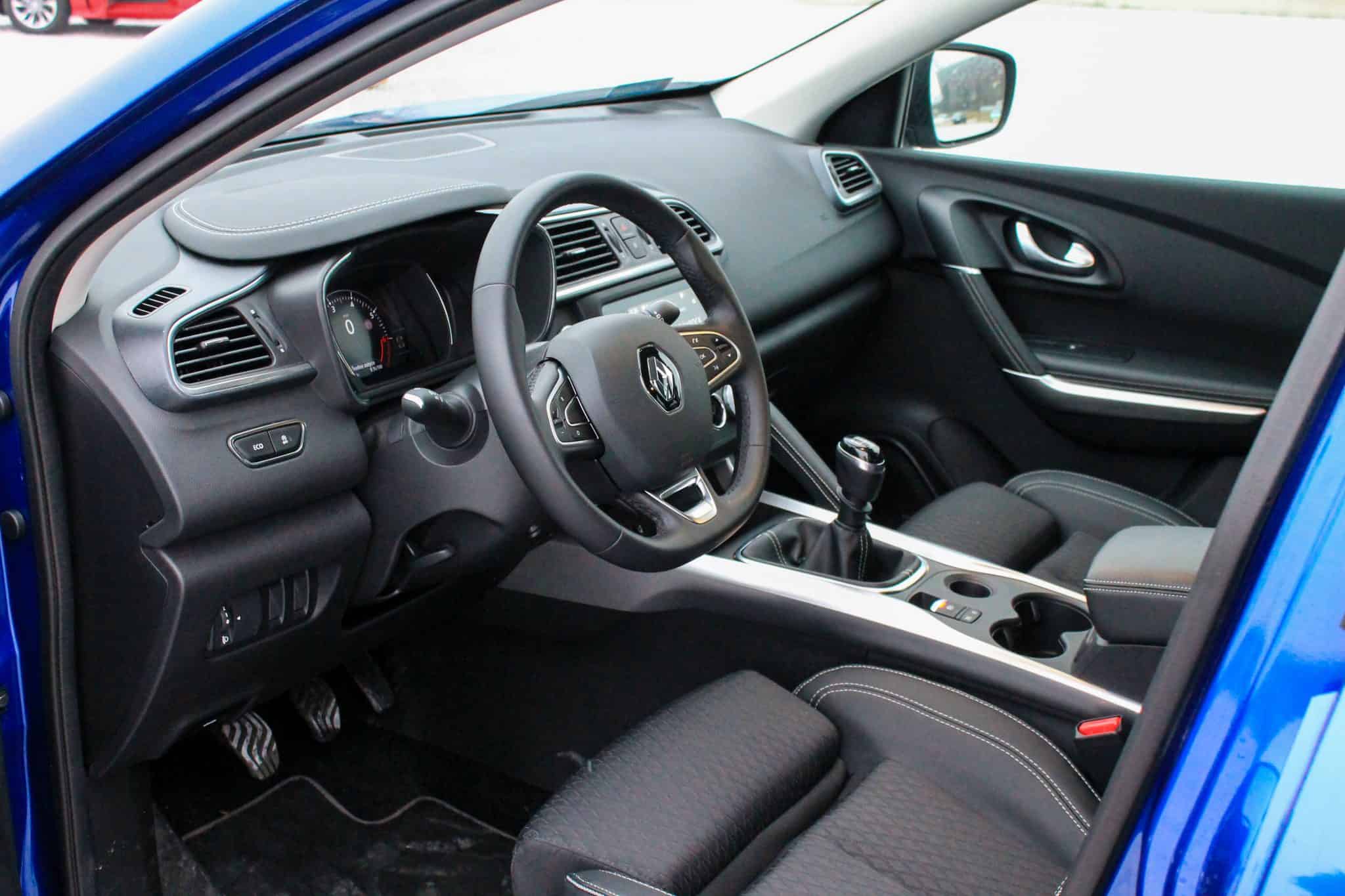 Wnętrze prezentuje się świeżo, zostało wykończone miłymi dla oka i miękkimi w dotyku materiałami. Przyjemną atmosferę zapewnia podświetlenie wnętrza w różnych wersjach kolorystycznych, a także system nagłośnieniowy Bose. Dźwięk audio zapewnia czysty dźwięk bez nadmiernie dudniących basów, aczkolwiek za te wrażenia dźwiękowe musimy dopłacić ekstra 3.000 zł. Widoczność za kierownicą Kadjara jest dobra zarówno przez przednią, jak i tylną szybę, a podczas zmian pasa ruchu pomogą duże lusterka boczne. Przy ostrzejszych zakrętach pole widzenia ograniczają szerokie przednie słupki. Podróż Kadjarem będzie jazdą w ciszy, w towarzystwie przede wszystkim dźwięków muzyki lub głosu naszego rozmówcy. Na wytłumienie wnętrza pojazdu żaden z kierowców ani pasażerów nie narzekał.