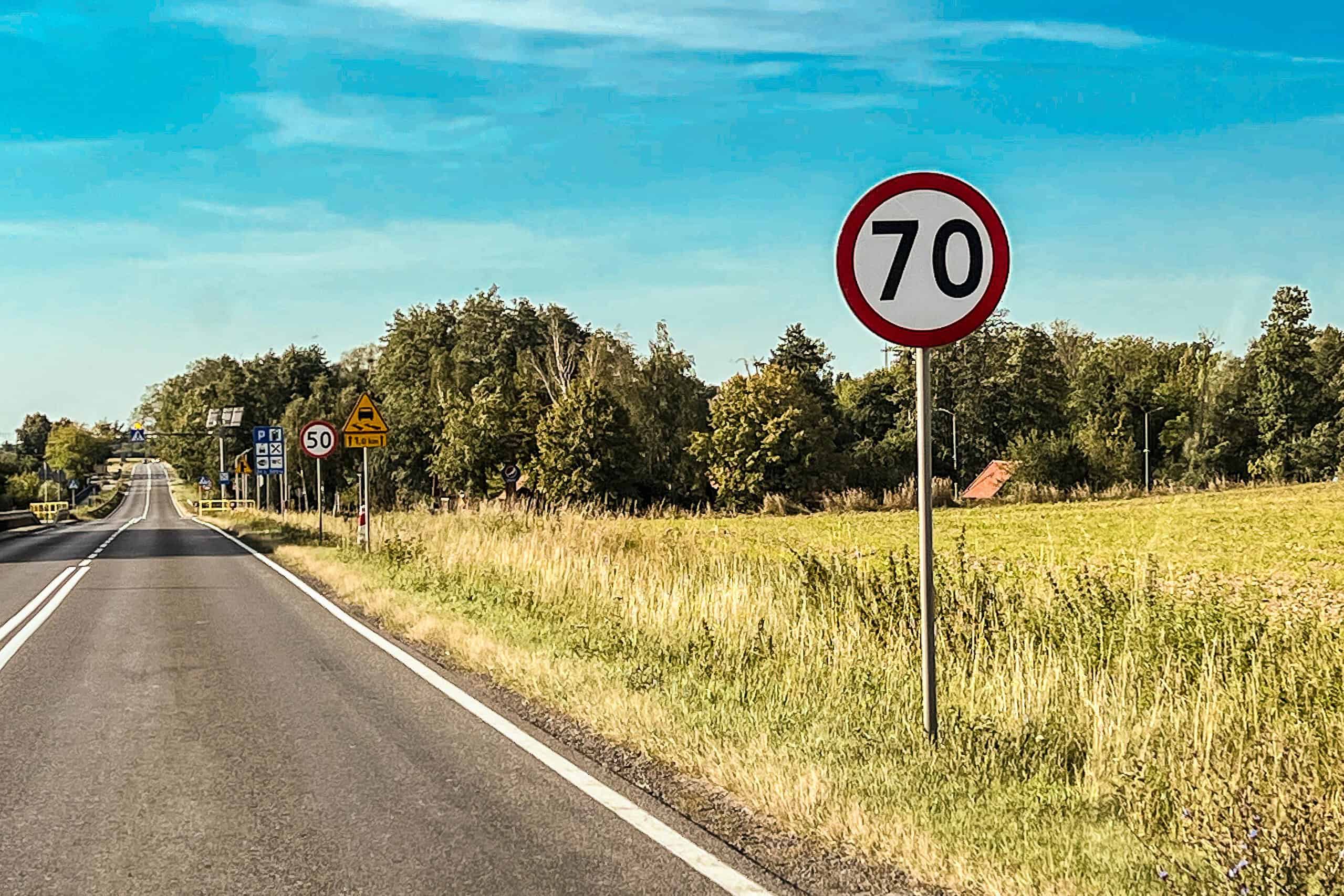 Oto typowy widok na polskich drogach. Znak ograniczenia prędkości do 70 km/h a tuż za nim, w odległości niecałych 50 metrów, znajduje się kolejny znak, tym razem ograniczający prędkość do 50 km/h. Jaki to ma sens? Dla kierowcy żaden. Czyżby więc chodziło o pieniądze? Nie jest to wykluczone.